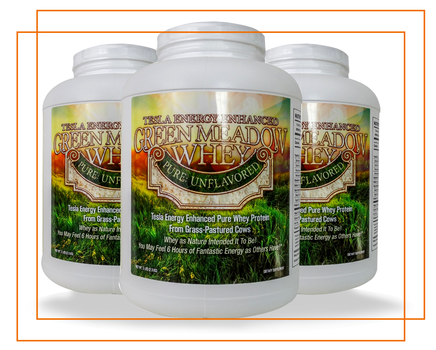 Unlike any other whey protein in the world, Green Meadow Whey is exclusively formulated with an advanced Tesla-like frequency science, which imparts properties that we believe exponentially enhance its effectiveness. Many of our customers say it “brings alive” the protein and nutrition so that they feel better, look better, have more energy and are remarkably stronger in health and in life. When you introduce the correct frequencies into the body you are able to make energy move through the body more abundantly. This results in the whole body operating with more energy and well-being.