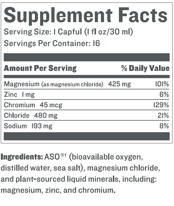 A powerhouse pre-workout supplement combining plant-sourced minerals and Activated Stabilized Oxygen—tested and proven to provide critical recovery for athletes.** On your toughest training days, ASO Sport™ RECOVER is your best defense against sore, strained muscles. This liquid sport supplement combines the proven lactate-blasting benefits of bioavailable oxygen with vital trace minerals —zinc, chromium, and magnesium — to help restore electrolyte balance, reduce muscle fatigue, and facilitate cellular repair.
