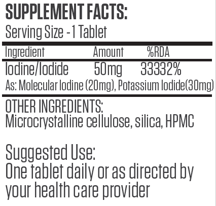Supplemental iodine has been found to be safe and well-tolerated in the inorganic, non-radioactive iodine/iodide form. LugoTab reflects the forms and ratios of iodine found in Lugol’s solution—a liquid combination of molecular iodine and potassium iodide that has been safely and effectively employed since 1829. LugoTab provides 50 mg of iodine per tablet, with a breakdown of 20 mg of molecular iodine and 30 mg of potassium iodide.