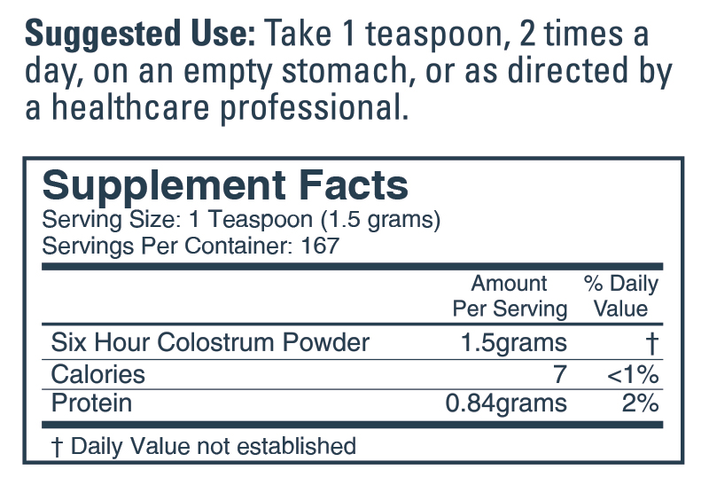 Dr. Ronās Six-Hour Colostrum Powder is the most potent colostrum available. Colostrum is the first lacteal secretion produced by the mammary glands of mammals prior to the production of milk. Over 80 components comprise the unique balance of immune-enhancing nutrients preserved by carefully processing the fresh colostrum, all collected from the first milking within six hours of the birth of bovine calves. Quality materials, superior handling and gentle processes are the trademark and passion of our supplier.
